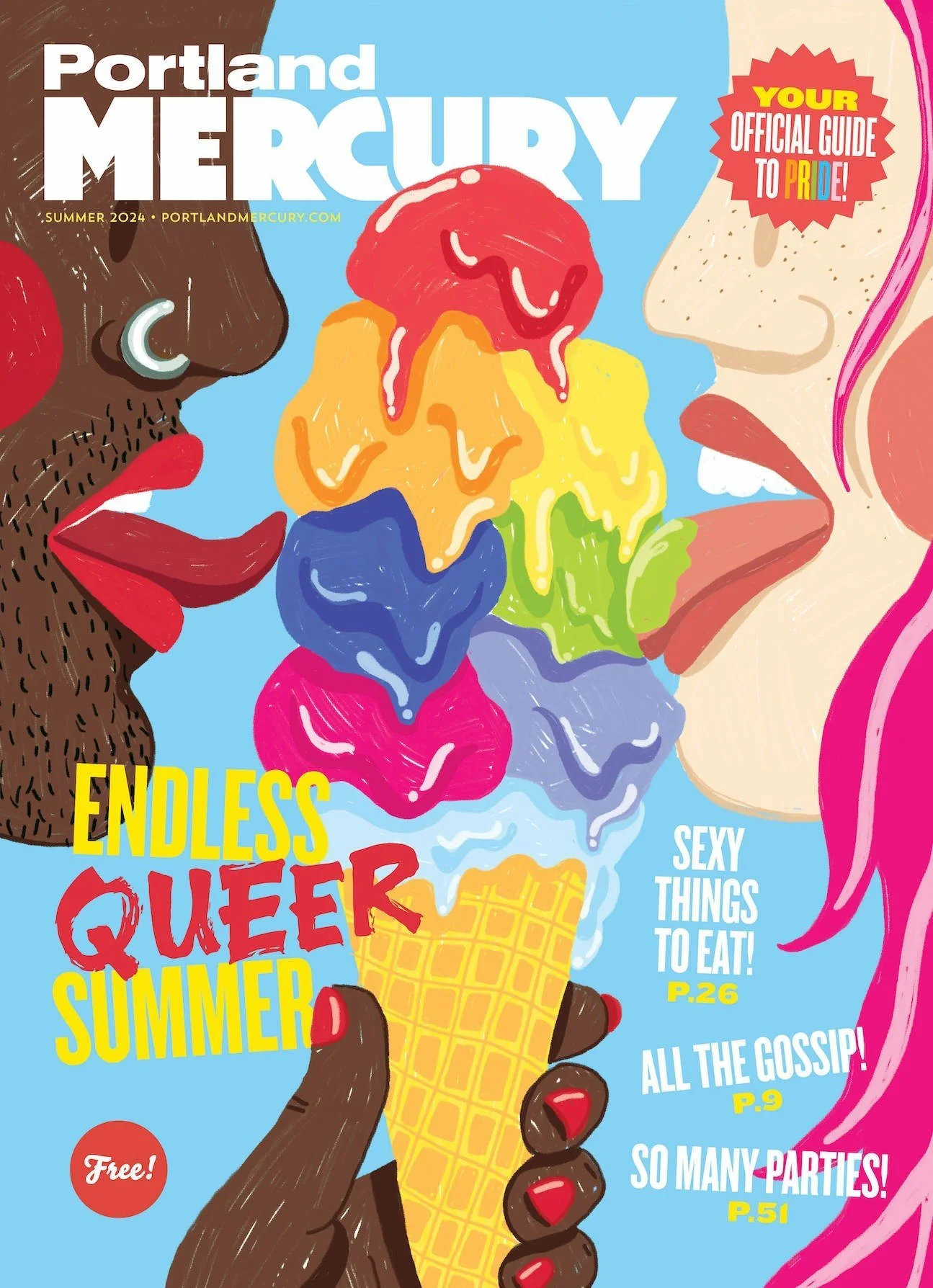 I developed my initial sketch using bold colours and highlights to create the final illustration. The cover was published in print and online for Portland Mercury’s pride cover.